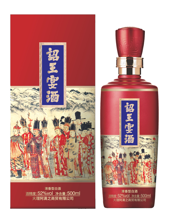 <p><span style="font-size: 20px;">食品名称:“诏王宴”牌白酒(小曲清香型固态发酵法白酒)<br/>酒精度:52%vol <br/>净含量:500ml<br/>原料与辅料: 水、高粱<br/>执行标准:DBS 53/007<br/>生产批号和日期:见喷码<br/>贮藏条件:阴凉干燥常温贮藏<br/>总经销:大理阿滴之商贸有限公司<br/>地址:云南省大理市满江街道五台路15号<br/>电话:0872-2151919<br/>温馨提示:<span style="font-size: 20px; color: rgb(192, 0, 0);"><strong>过量饮酒 有害健康</strong></span></span></p>